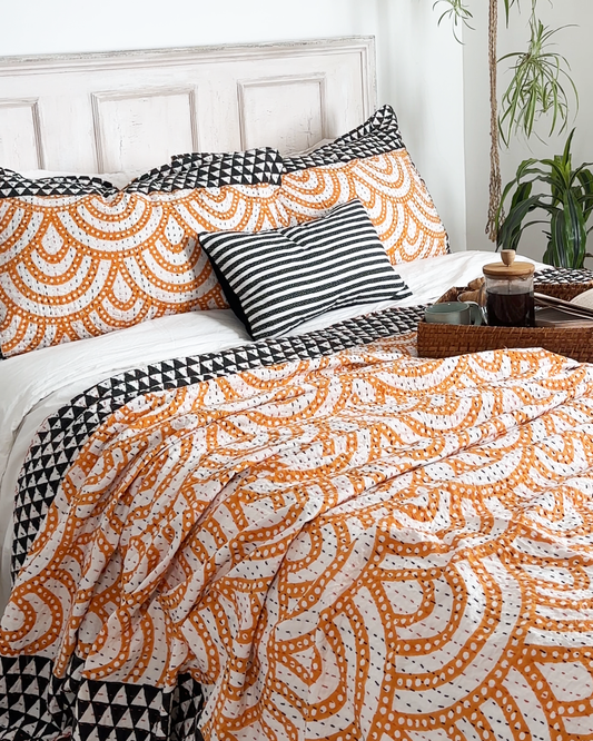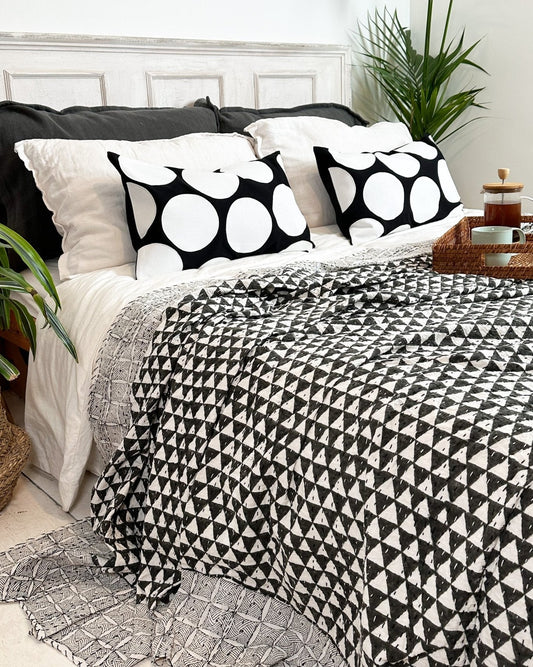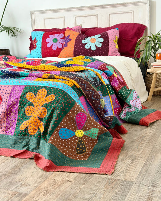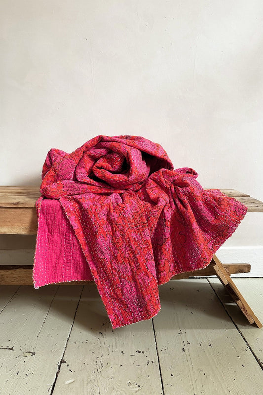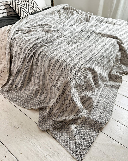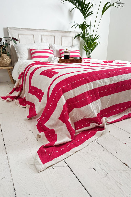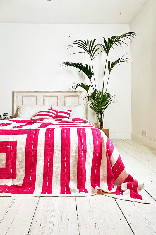 Our bedspreads and blankets are here to transform your bedroom in an instant! Choose from our handmade one-off vintage kantha throws, cotton kantha bedcovers or distinctive striped pure linen bedspreads to give your bedroom that extra special finishing touch.