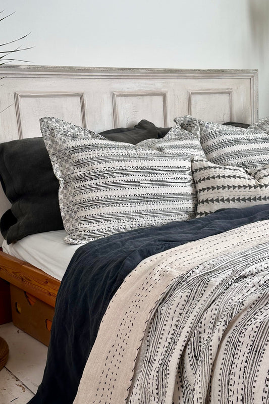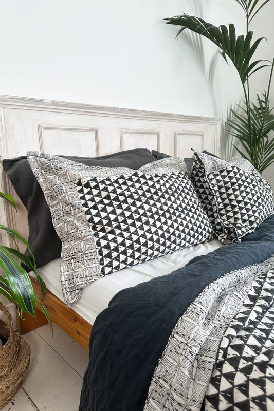 Black and White Triangle Print Handmade Kantha Pillowcase