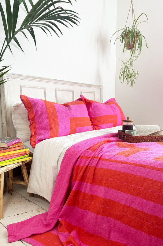 Pink Geometric Chunky Cotton Handmade Pillowcase