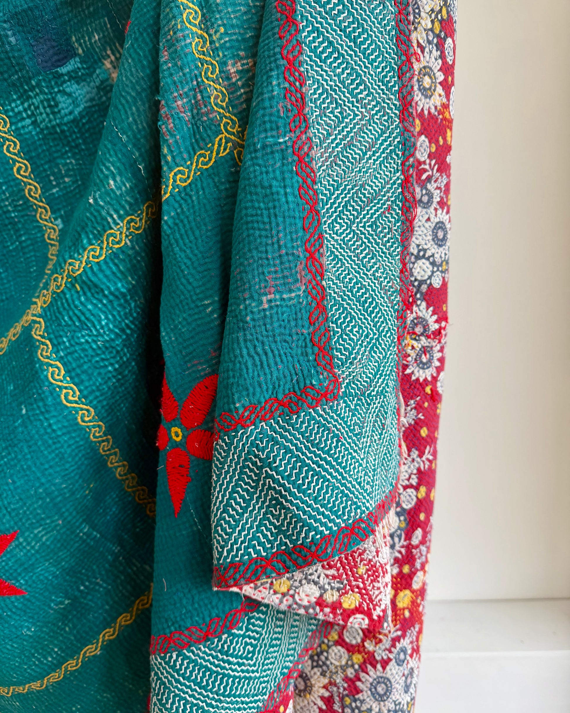 We hand select our kantha quilts for their bright colours, versatile sizes and unique patterns, and photograph them in as much detail as possible so that you can see the beautiful features of each one.