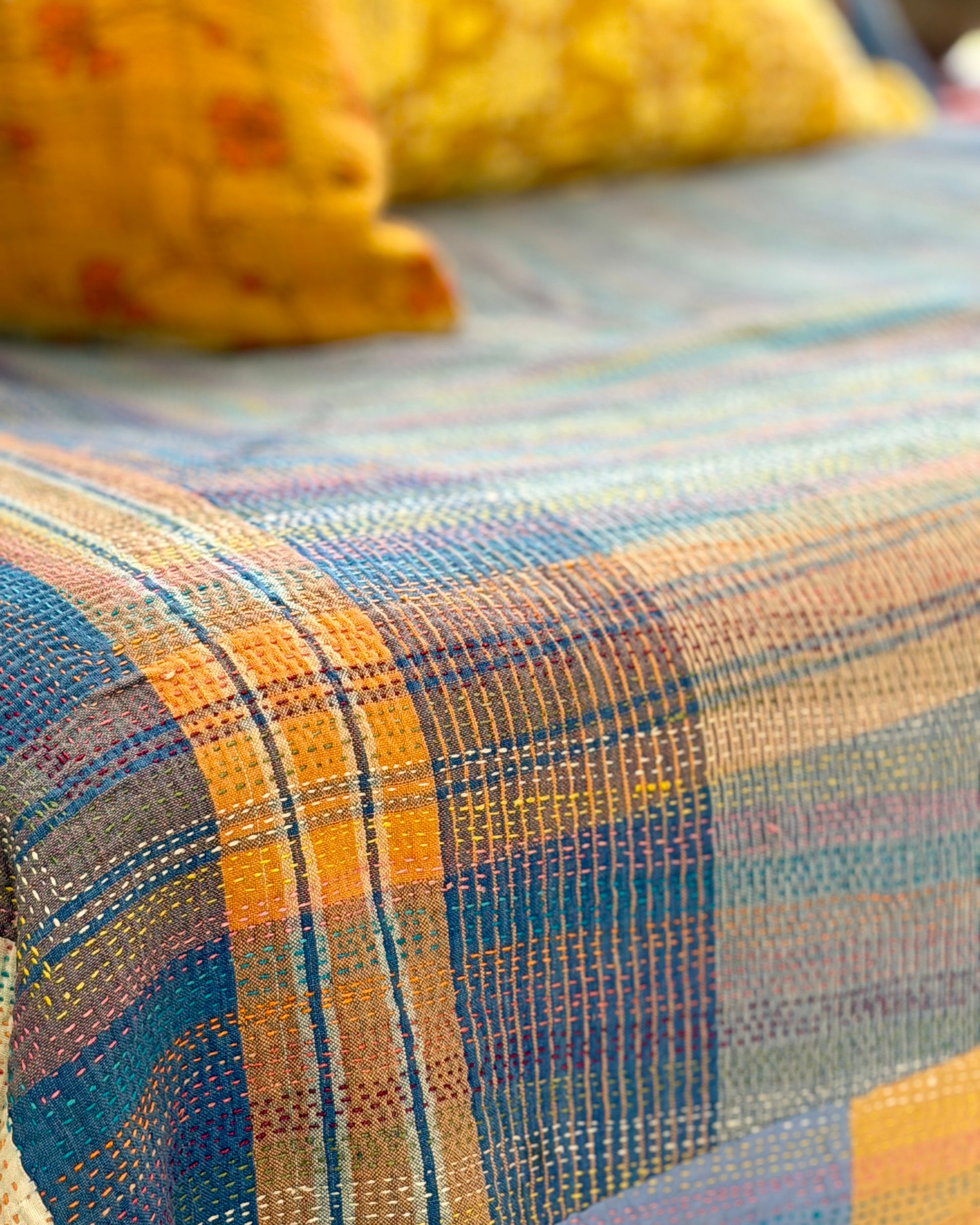 We hand select our kantha quilts for their bright colours, versatile sizes and unique patterns, and photograph them in as much detail as possible so that you can see the beautiful features of each one.