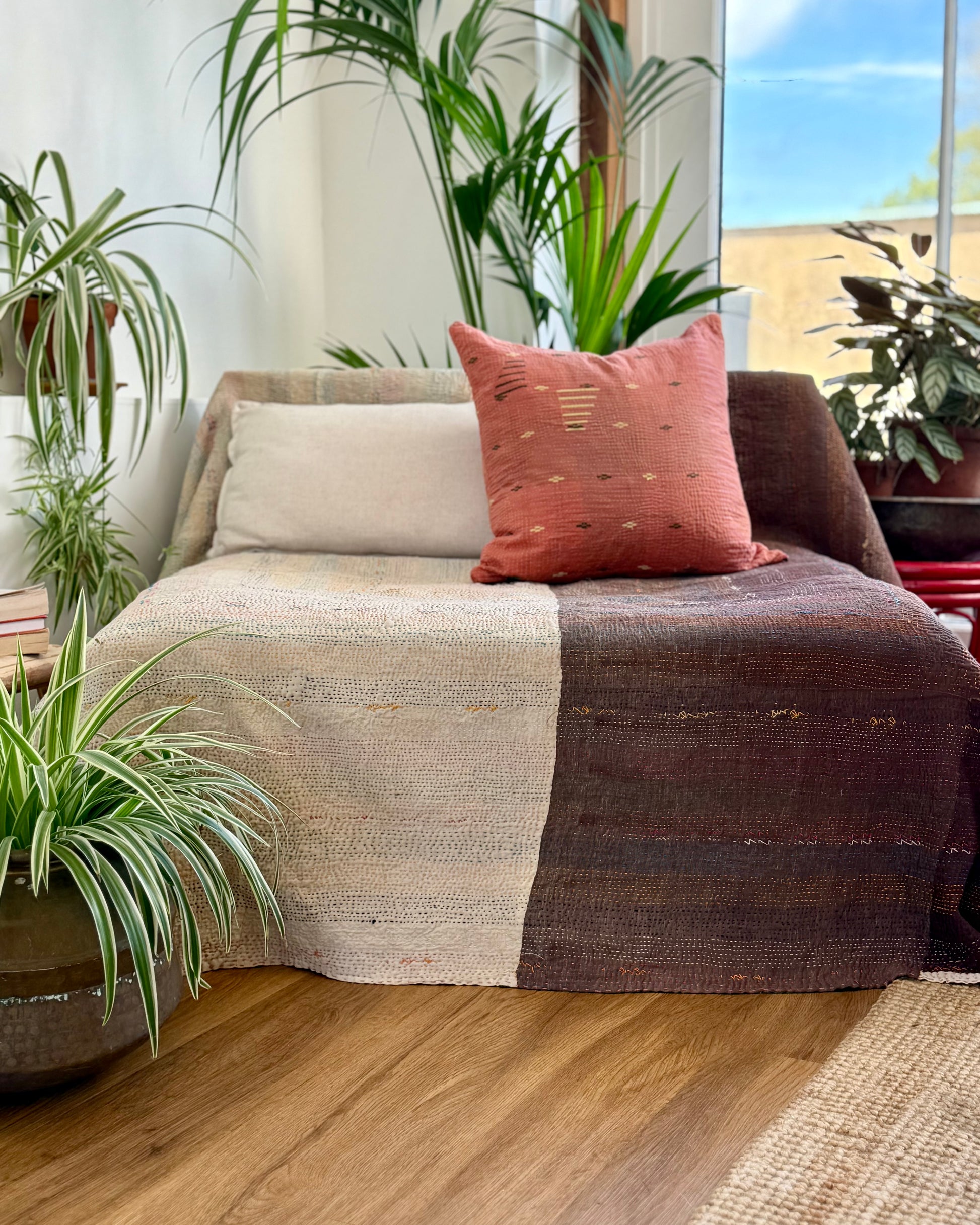 We hand select our kantha quilts for their bright colours, versatile sizes and unique patterns, and photograph them in as much detail as possible so that you can see the beautiful features of each one.