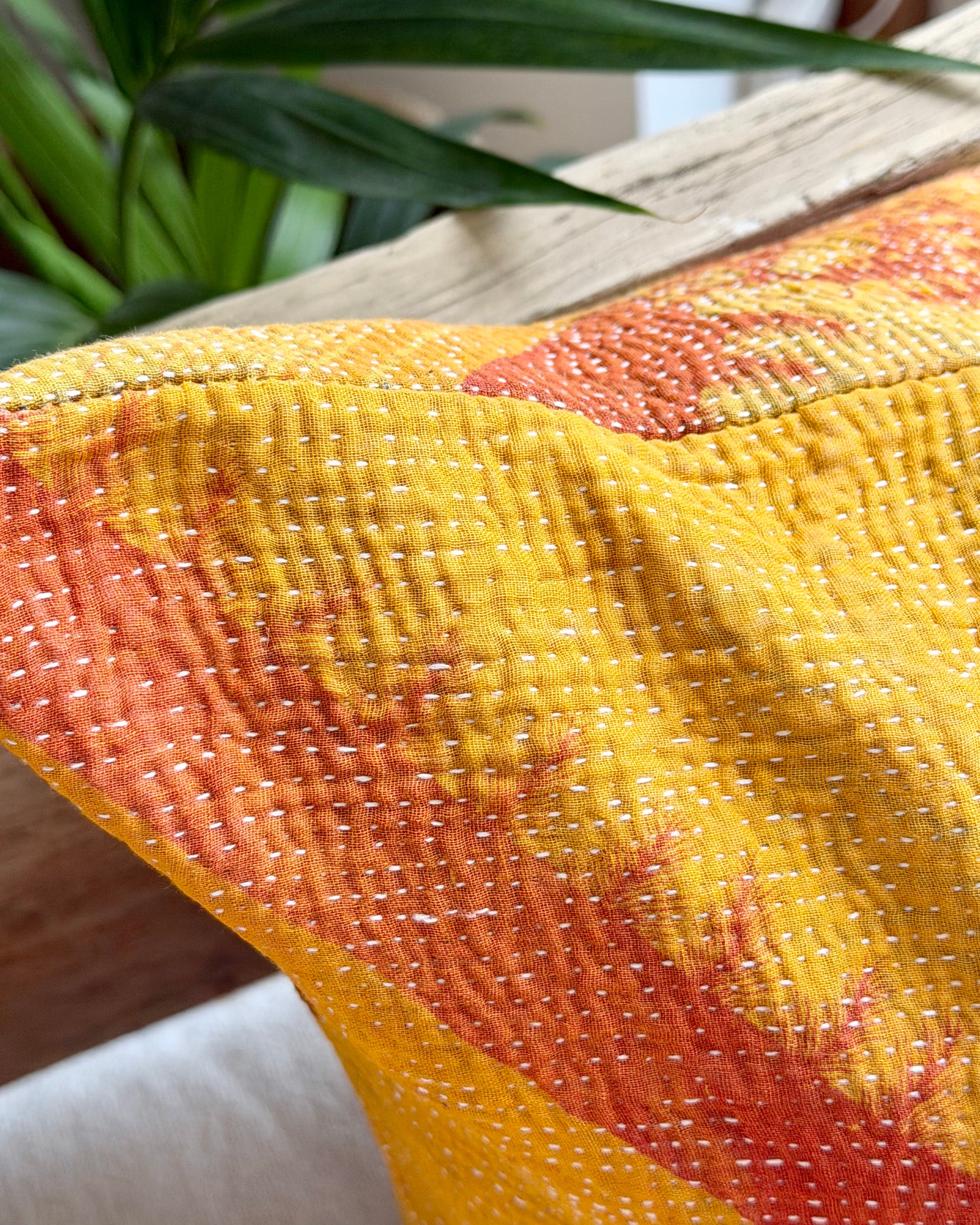 Vintage kantha fabric is handmade, hand stitched and has been used in the past so expect minor imperfections, worn areas, patches and repairs. We love that character and consider them an integral part of the history rather than defects.