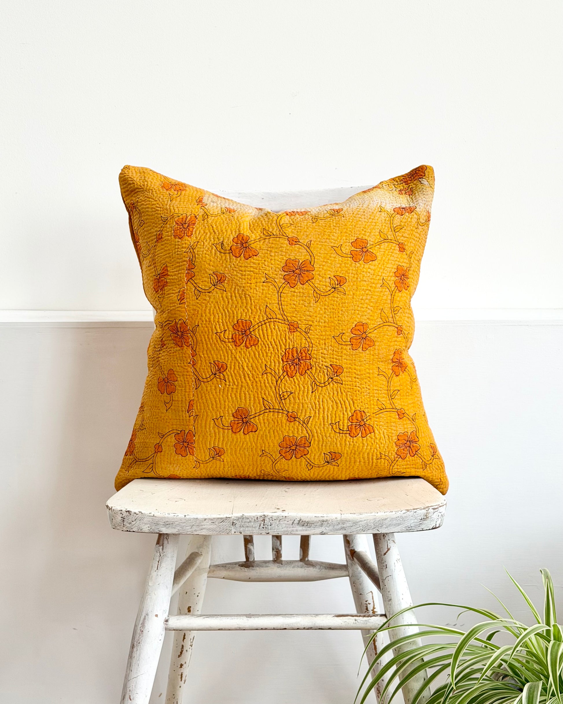 Vintage Kantha Cushion In Yellow Floral - 45cm Square